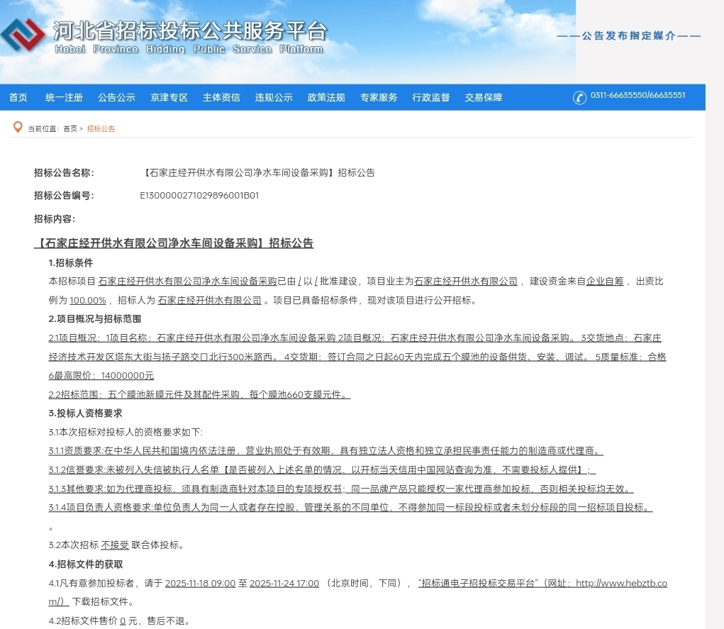 4、业绩材料中需明确体现“采用浸没式超滤膜组件”,该表述在实际合同中极为罕见,进一步印证招标条件系为天津膜天膜、海南立昇等特定企业量身设定。网友举报是否属实?希望属地相关部门介入调查!